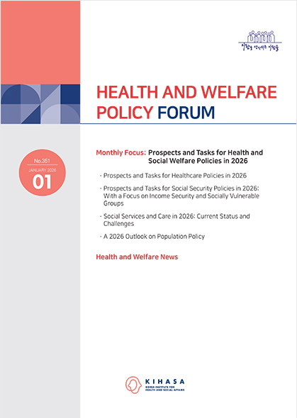 KIHASA has published the January issue (No. 351) of the Health and Welfare Policy Forum. Its monthly focus is "Prospects and Tasks for Health and Social Welfare Policies in 2026" (Click here to download this month's articles.)