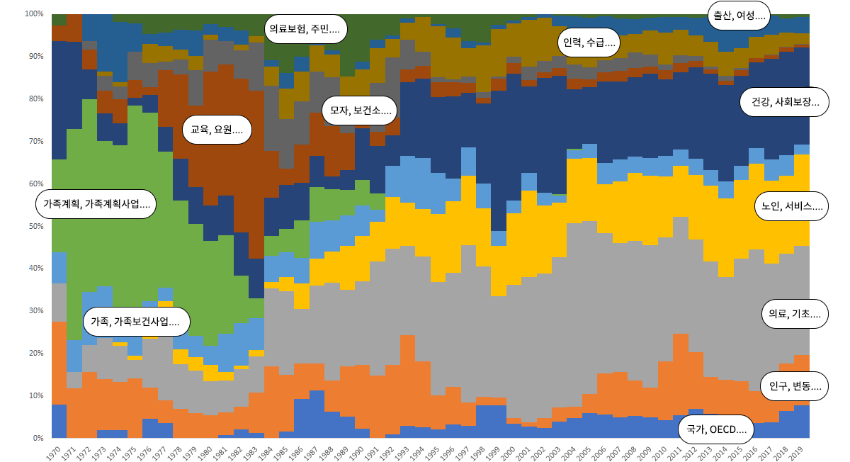 둘째는 「연구 역사」 편입니다. 이곳은 한국보건사회연구원의 역사가 한국 보건복지정책의 역사와 함께했음이 웅변으로 드러나는 곳입니다. 51년간의 사회적 변화에 따른 중점 연구의 변화 과정, 각종 국가 기본계획 수립 참여와 관련된 사실들을 체계적으로 배열하여 연관성을 생생히 보여 주고 있습니다. 그 당시 연구를 주도하였던 연구자들도 밝히고 있습니다. 나아가 한국보건사회연구원의 역할을 뛰어넘어 발전 단계별 기록과 정책 역사서도 보여 주고 있다는 점에서, 단순한 사실의 기록만이 아니라 역사적 해석을 담고 있다는 점에서 매우 값진 영역이라 할 수 있습니다. 앞으로 끊임없이 사료를 더 보충하고 다양한 연구 작업과 풍부하고 정확한 해석을 통해 더 발전시켜 나갈 영역이라는 점에서 기대되는 부분입니다. 이러한 작업을 더욱 성실히 해 나갈 것임을 약속드립니다.