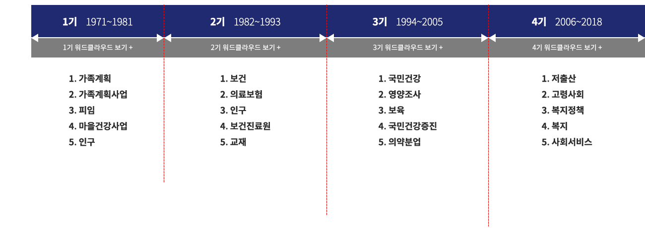 둘째는 「연구 역사」 편입니다. 이곳은 한국보건사회연구원의 역사가 한국 보건복지정책의 역사와 함께했음이 웅변으로 드러나는 곳입니다. 51년간의 사회적 변화에 따른 중점 연구의 변화 과정, 각종 국가 기본계획 수립 참여와 관련된 사실들을 체계적으로 배열하여 연관성을 생생히 보여 주고 있습니다. 그 당시 연구를 주도하였던 연구자들도 밝히고 있습니다. 나아가 한국보건사회연구원의 역할을 뛰어넘어 발전 단계별 기록과 정책 역사서도 보여 주고 있다는 점에서, 단순한 사실의 기록만이 아니라 역사적 해석을 담고 있다는 점에서 매우 값진 영역이라 할 수 있습니다. 앞으로 끊임없이 사료를 더 보충하고 다양한 연구 작업과 풍부하고 정확한 해석을 통해 더 발전시켜 나갈 영역이라는 점에서 기대되는 부분입니다. 이러한 작업을 더욱 성실히 해 나갈 것임을 약속드립니다.