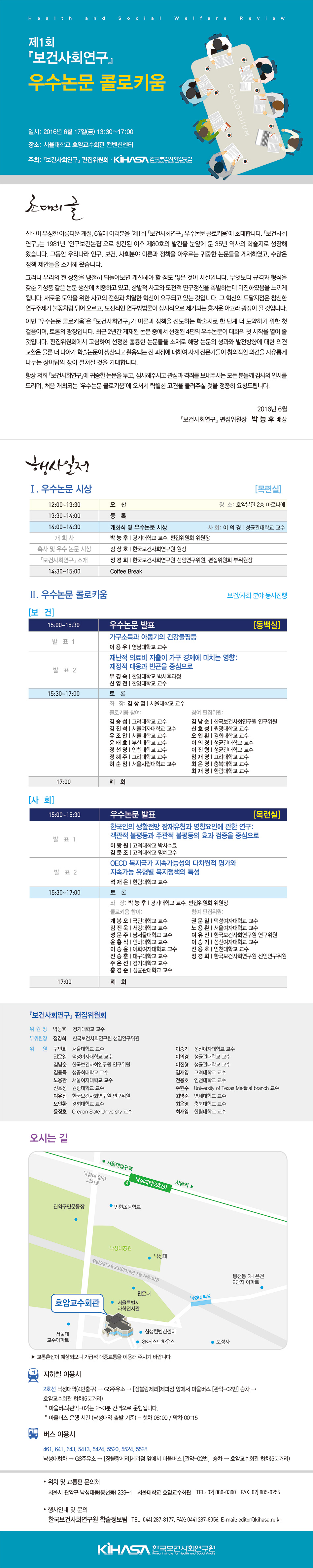 - 주최: 『보건사회연구』 편집위원회·한국보건사회연구원