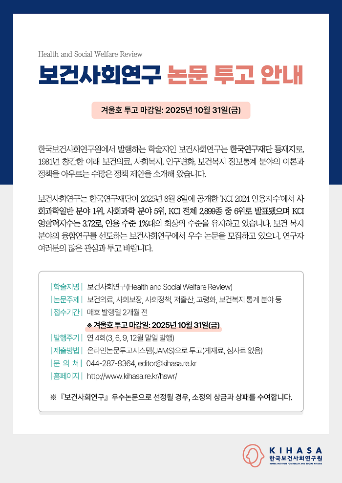 『보건사회연구』 2025년 겨울호(제45권 제4호) 투고 안내