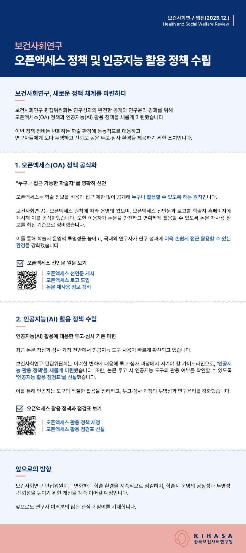 『보건사회연구』 오픈액세스 정책 및 인공지능 활용 정책 수립