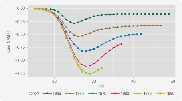 주: Cum_CASFR(누적 코호트 연령별 출산율), age(연령), cohort(코호트).