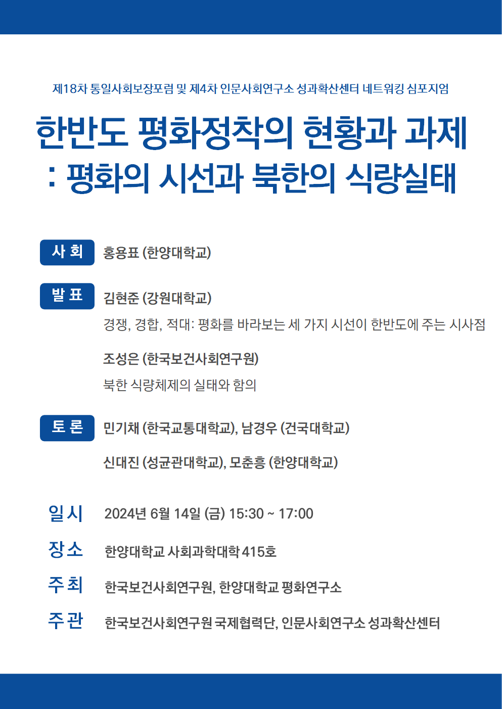 - 주최: 한국보건사회연구원, 한양대학교 평화연구소