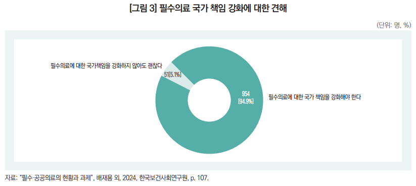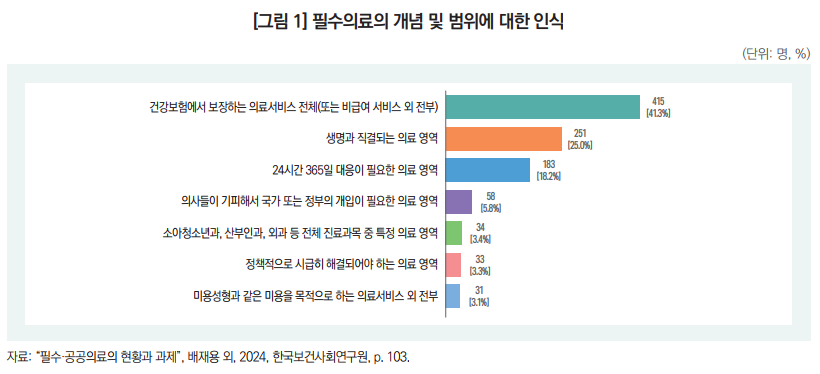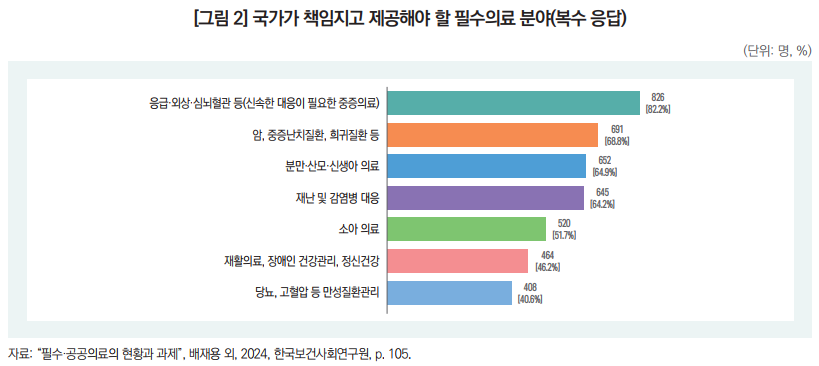 국민 대다수가 필수의료에 대한 국가 책임 강화 원해… 필수의료의 개념과 범위에 대해서는 사회적 합의 필요