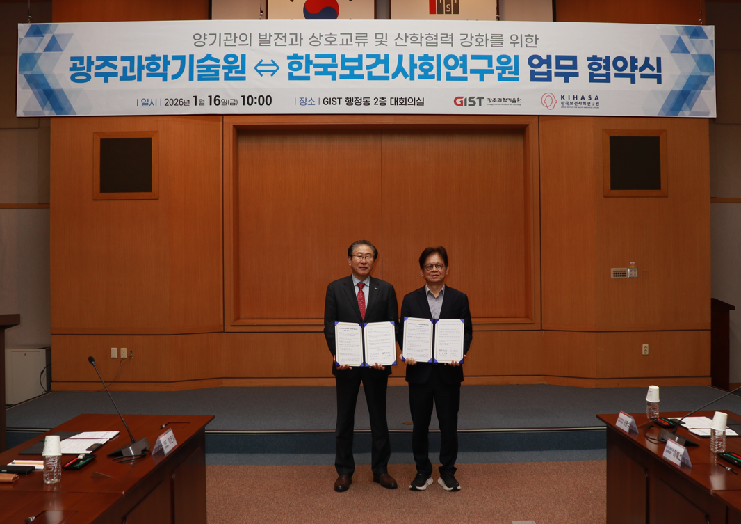 한국보건사회연구원-광주과학기술원(GIST), 보건·복지 분야 공동연구와 산학협력 강화를 위한 업무협약 체결