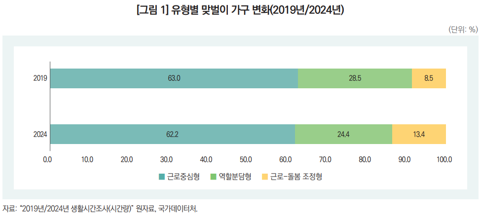 맞벌이 가구, 여전히 ‘근로중심형’ 비율이 가장 높아… 근로시간 조정할 수 있는 일가정 양립 정책 강화해야