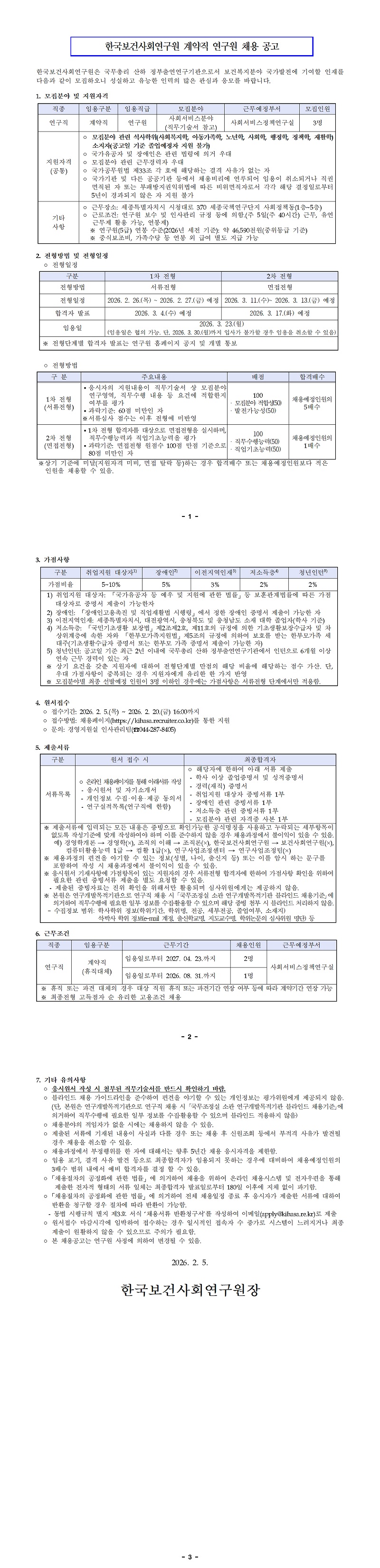 계약직 연구원 채용(사회서비스정책연구실)